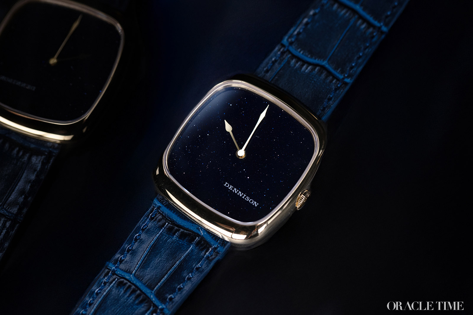 In addition to the mineral dial, the Midnight Aventurine ups the luxe ante even further with a gold PVD finish on the case, hands, crown and strap pin buckle. Turning either watch over reveals a solid caseback decorated with the Dennison logo with a radial pattern emerging from it. Protected by said caseback is the Swiss Ronda Quartz 1032-1 movement. Admittedly this movement lacks the prestige of a mechanical movement but it’s an integral part of maintaining the watches’ slim profiles. Plus, we’ve seen many revival brands start with quartz before graduating to mechanical a few years down the line and that’s entirely possible with Dennison.