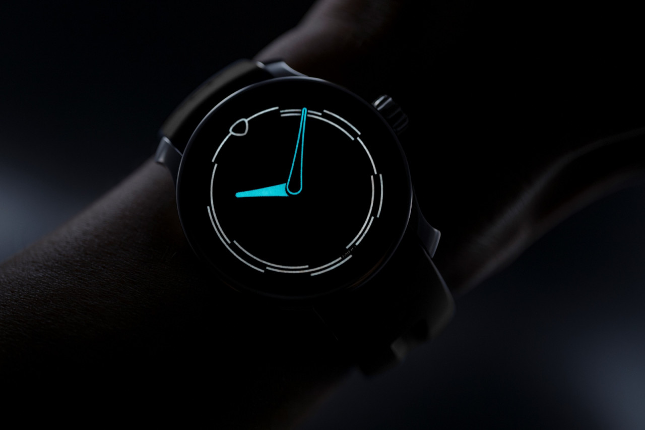 The dial of the Ming 37.02 Minimalist is deceptively simple, offering an industry first.. Ming Thein has been obsessively trying to make a luminescent compound that emanates a pure white glow, and this is the result. While it seems applied to the sapphire dial, that’s not the case. The proprietary white lume is liquid-filled into the triple laser-etched grooves encircling the dial. Each stop between the lumed semi-circles denotes the hour, so the charmingly expressive pattern is anything but random. Realizing this made me nod and grin widely in approval, making the intensely minimal 37.02 very legible.